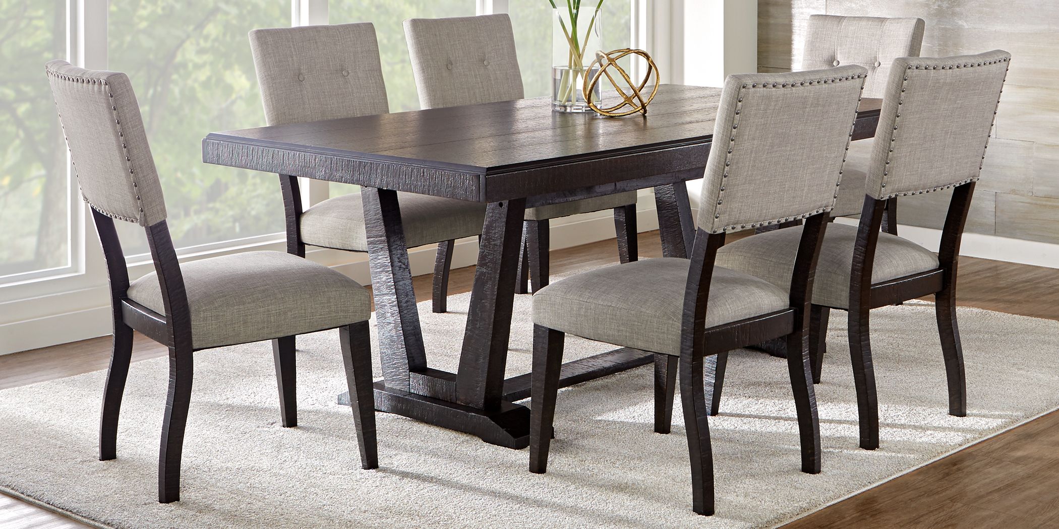 A rectangular dining table set is best paired with a formal décor and maybe even a china hutch. Shop our collection of black dining room furniture at macys.com! Set a generous table with our gorgeous dining room furniture, whether you're entertaining family and friends or enjoying a quiet meal at home. Adding extra flair to this set. Whether you prefer a metal, glass or wood dining room table you'll find it in a square, round or rectangular shape that perfectly fits your dining space.